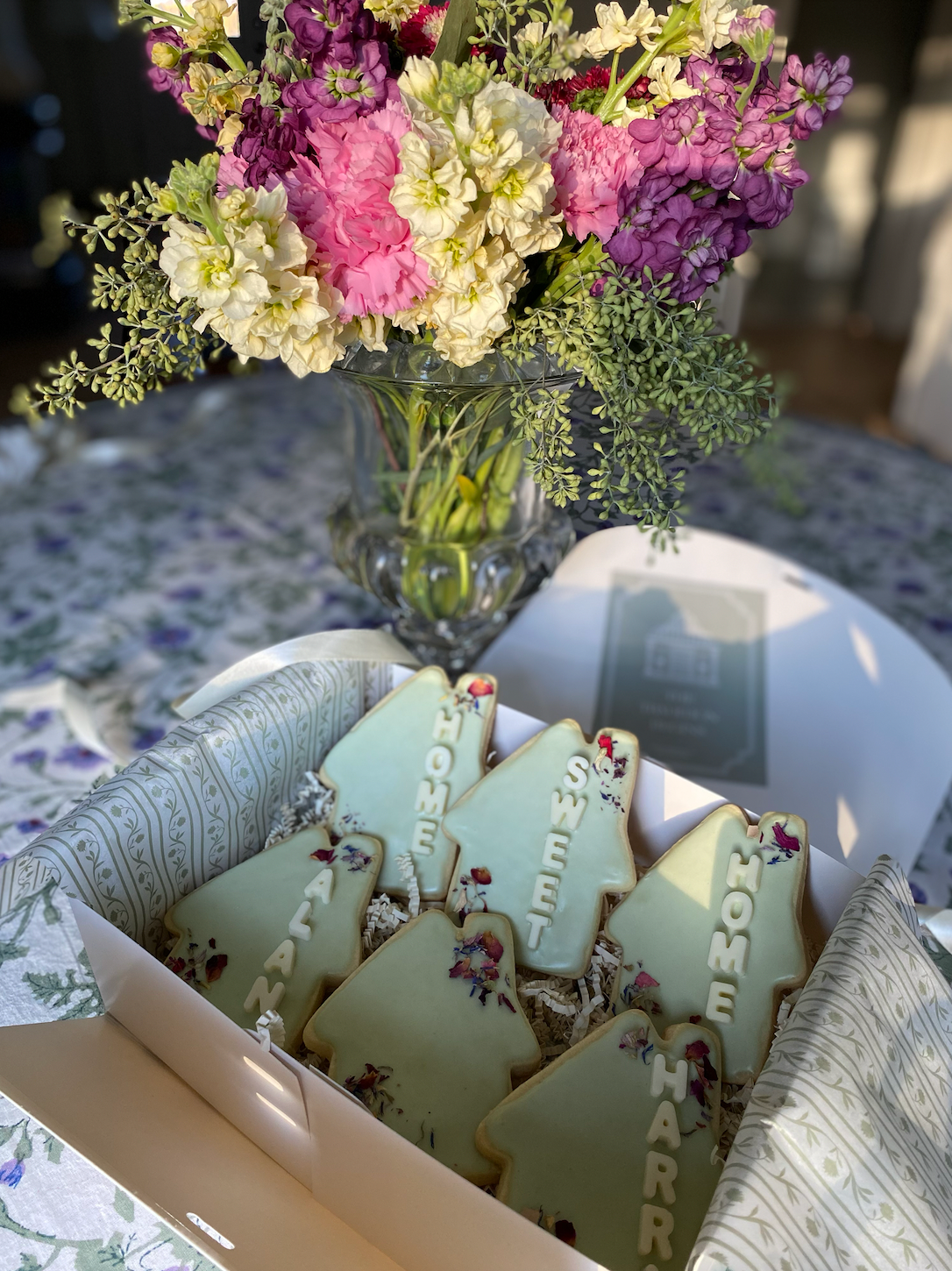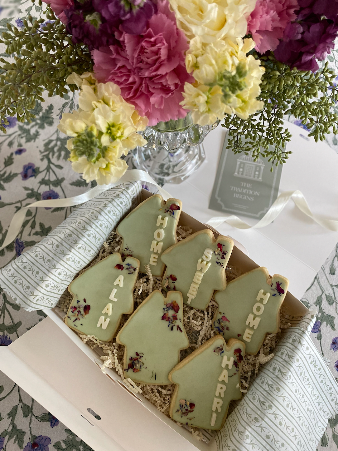 Inclusive of 6 House Cookies with option to add additional floral cookies, seasonal cookies, sweets or charcuterie board.