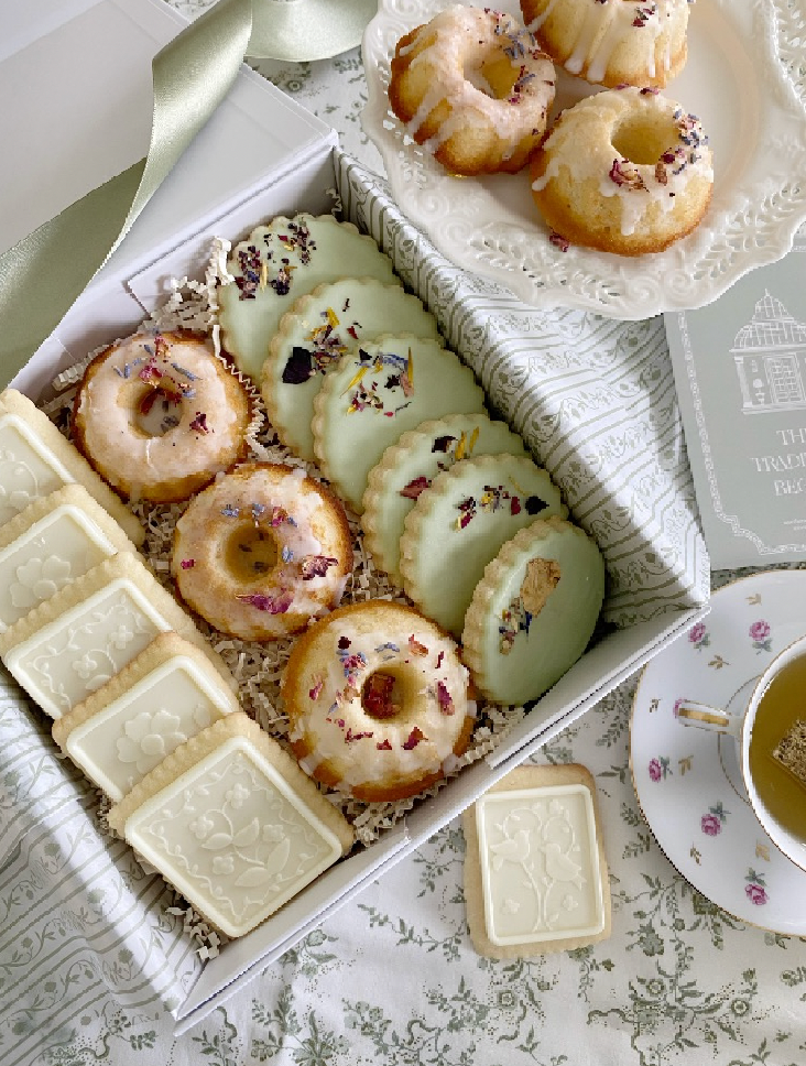 Beautiful magnetic closure gift box with our signature tissue, ribbon and embossed tag. Inclusive of 1 dozen assorted cookies and 1/2 dozen seasonal bundt cakes.